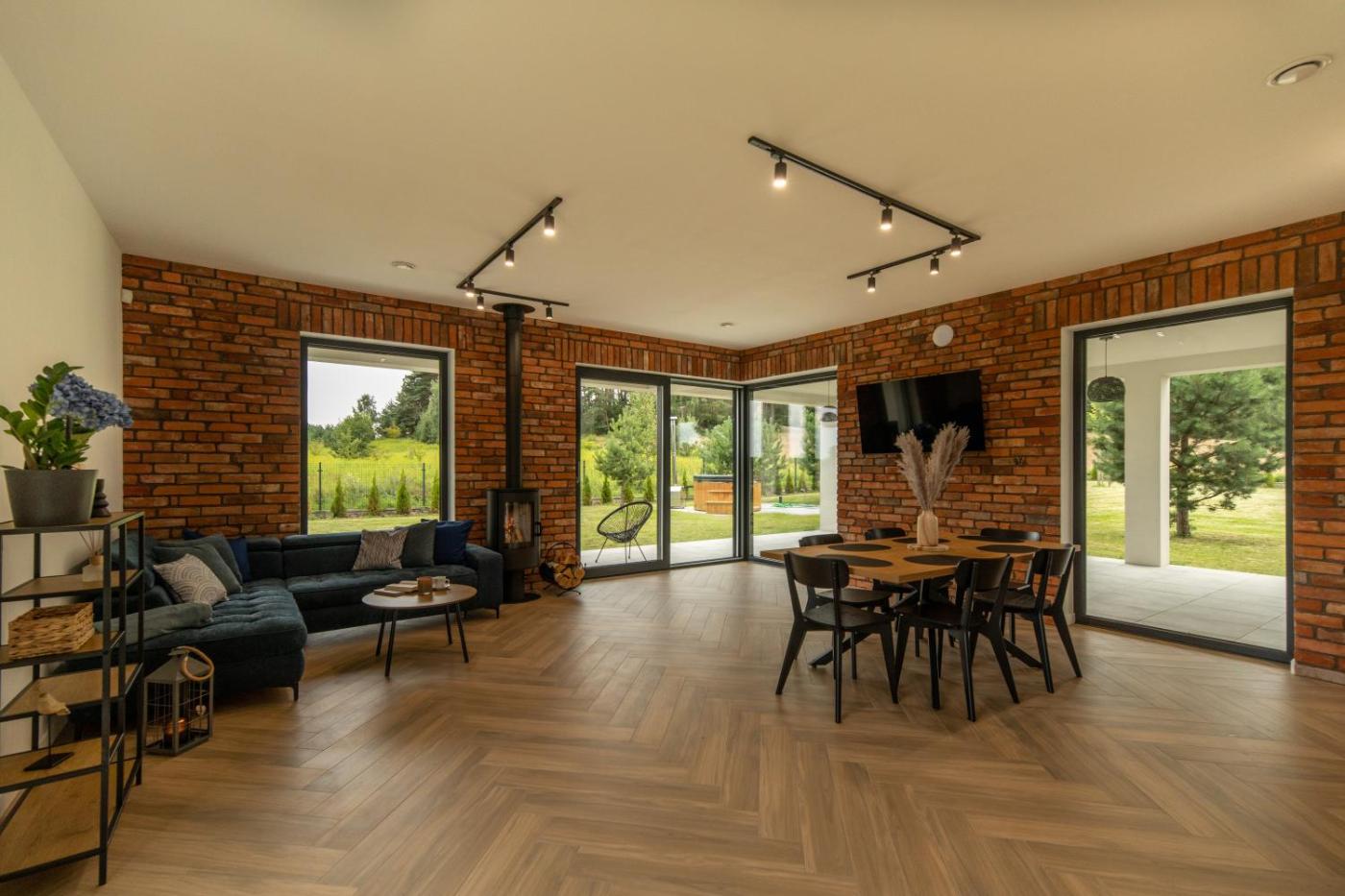 Dom wakacyjny. This holiday home boasts a hot tub, sauna and fireplace. The holiday homes kitchen, which features kitchenware, is available for cooking and storing food. The holiday home provides a washing machine, heating, a terrace with garden views as well as a shared bathroom featuring a bath. The unit offers 6 beds. Dom wakacyjny - 8 osobowy. Powierzchnia pokoju ok.: 110 mkw.