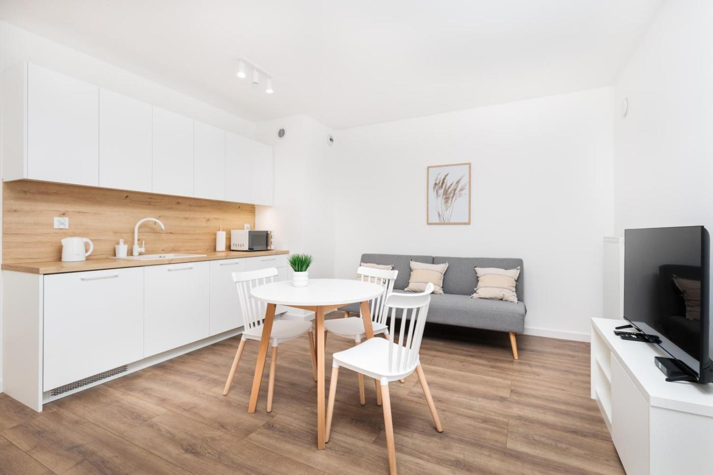 Apartament z 1 sypialnią. Meals can be prepared in the kitchenette, which comes with a stovetop, a refrigerator, a dishwasher and kitchenware. This apartment is air-conditioned and features a seating area with a flat-screen TV, a washing machine, a coffee machine, a dining area, as well as a wardrobe. The unit offers 2 beds. Apartament - 3 osobowy. Powierzchnia pokoju ok.: 30 mkw.
