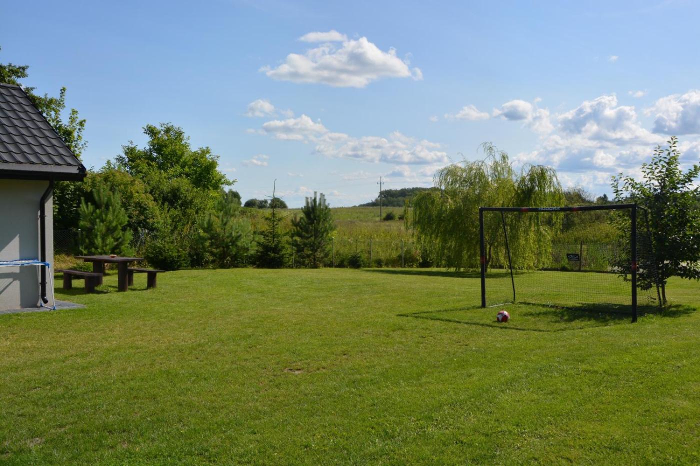 Dom z 1 sypialnią. Featuring a private entrance, this holiday home is comprised of 1 living room, 1 separate bedroom and 1 bathroom with a walk-in shower. Guests will find a refrigerator and kitchenware in the kitchenette. The holiday home also has a barbecue. The holiday home offers a dining area, a wardrobe, an electric kettle, a flat-screen TV with satellite channels, as well as garden views. The unit offers 4 beds. Dom wakacyjny - 5 osobowy. Powierzchnia pokoju ok.: 30 mkw.